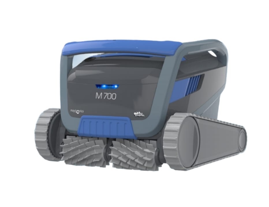 Robot Dolphin M-700 con Wifi ofreciendo un máximo rendimiento, proporcionando una limpieza total y una filtración de agua optimizada. Su sistema de navegación giroscópico asegura una cobertura de limpieza completa.